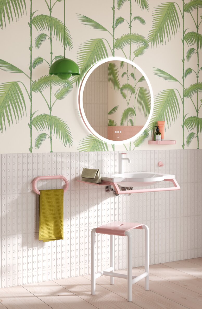 Die Barbie™ x HEWI Kollektion zeigt, wie konsequent ein Waschplatz gedacht werden kann, wenn Funktion und Gestaltung zusammen entwickelt werden. Alle Elemente, vom Waschtisch über Armatur und Spiegel bis zu den Accessoires, greifen ineinander und bilden ein System, das im Alltag verschiedensten NutzerInnen Komfort schenkt.