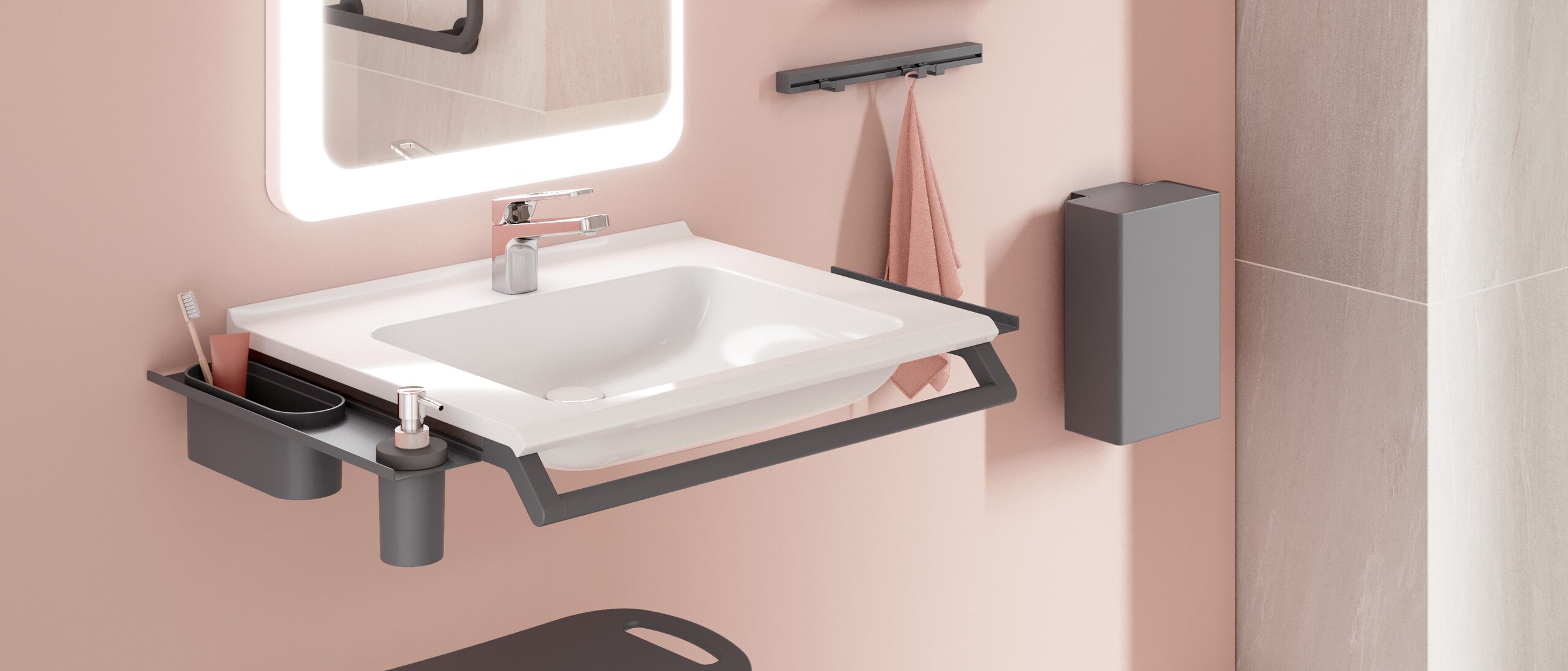 Wenn es darum geht, barrierefreie Sanitäreinrichtungen zu gestalten und zu planen, müssen Sie als ArchitektIn oder Planerin Einiges beachten. Einen wichtigen Platz bei der Planung nimmt der Waschtisch ein. Was ist beispielsweise die richtige Höhe, in der der barrierefreie Waschtisch anzubringen ist, wie sieht eine ausreichende Bewegungsfläche aus? Welche Abstände, Maße oder Richtlinien sind darüber hinaus wichtig? HEWI hilft Ihnen dabei, bei der Planung des Waschtischbereiches den Überblick zu behalten.
