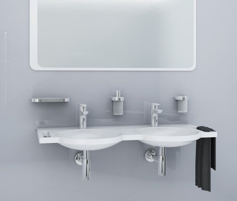 Bei der Frage nach der passenden Waschtischgröße gibt es eine große Bandbreite an unterschiedlichen Möglichkeiten. Waschtische von HEWI sind in vielen unterschiedlichen Größen erhältlich. Angefangen bei den kleinsten Standardwaschtischen mit 60 cm bis 65 cm bis hin zu den größten mit einer Breite von 85 cm. Das HEWI Sortiment bieten Ihnen zahlreiche Gestaltungsmöglichkeiten. Neben den Einzelwaschtischen sind ebenfalls Doppelwaschtische erhältlich, die 110 cm breit sind. Mit den längenvariablen Waschtischen nach Maß bietet HEWI erweiterte gestalterische Vielfalt. Diese Waschtischart ist mit einer Breite von 85 cm bis 280 cm nach den Bedürfnissen Ihrer KundInnen variabel wählbar.