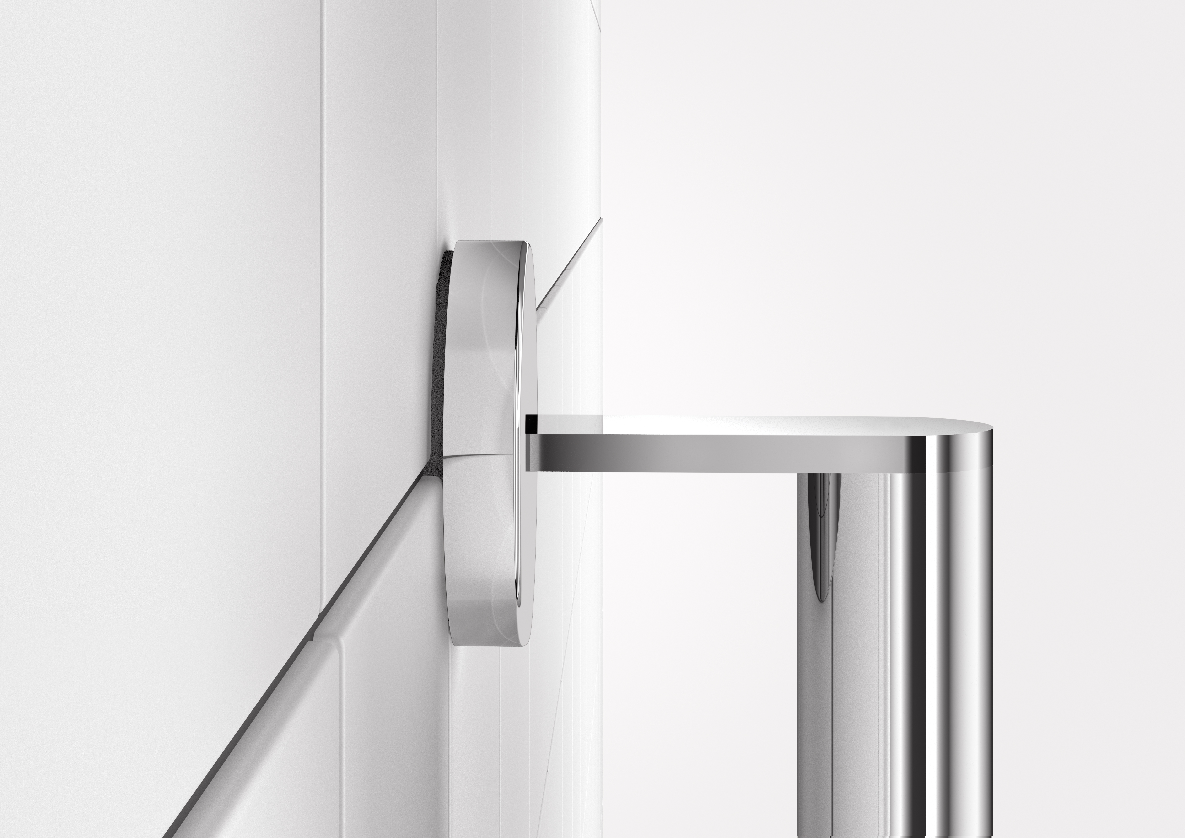 System 900 überzeugt durch eine clevere Montagetechnik. Die neuartige Eckverbindung ermöglicht, dass die Relingsysteme und Duschhandläufe besonders einfach zu montieren sind. Statt der üblichen vier Befestigungspunkte werden mit der innovativen Steck-Rast-Verbindung nur noch drei Rosetten benötigt. Dadurch wird die Montage deutlich schneller.