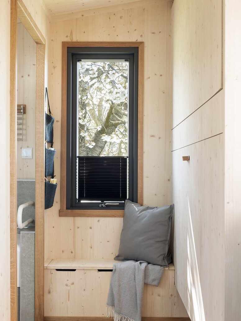 Bei einem Tiny House ist die Wohnqualität ein bedeutender Faktor, der zum Wohlbefinden der BewohnerInnen beiträgt. Dabei spielt die Beschaffenheit der Materialien eine große Rolle. Das auf RollstuhlnutzerInnen ausgerichtete Minihaus besteht hauptsächlich aus natürlichen Materialien. Selbst die Dämmung in Wänden und Dach bedient sich keiner Styropormaterialien, sondern ist mit Schafwolle ausgeführt und bietet so eine ideale Isolierung zu jeder Jahreszeit. Eine speziell hinterlüftete Lärchenverschalung schützt das Haus an der Außenfassade. Damit ist das Tiny House nicht nur ein optischer Hingucker, sondern weist auch eine gute Energiebilanz auf und reduziert den eigenen ökologischen Fußabdruck.