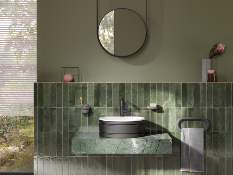 Mit DUO erweitert HEWI sein Sortiment um einen runden Aufsatzwaschtisch aus hochwertiger Keramik, der Ästhetik und Funktion auf elegante Weise vereint. Die klare Formensprache und die kontrastreiche Gestaltung setzen markante Akzente im Bad – zu Hause, im Hotel oder im öffentlichen Raum.