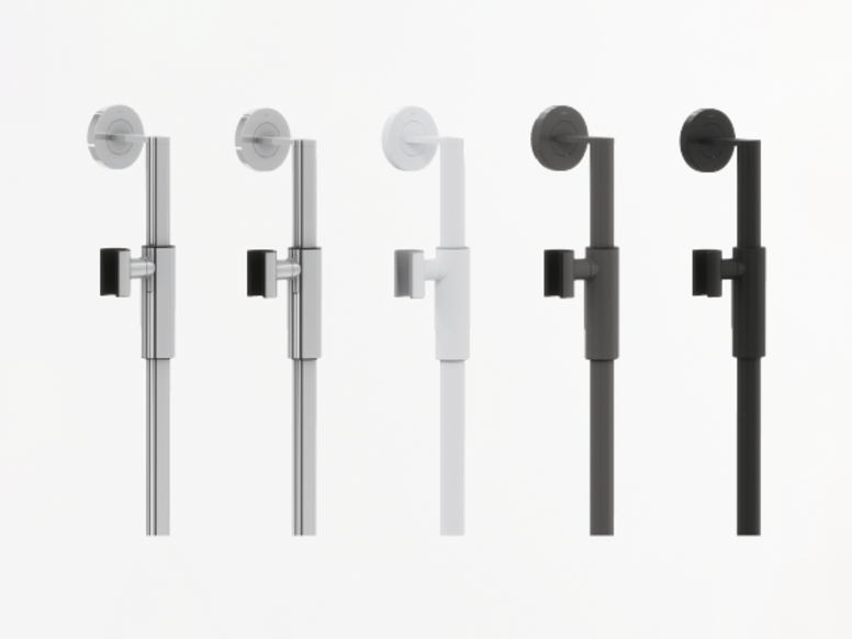 The shower rails, L-shaped support rails and shower handrails with the magnetic shower-head holder from System 900 are available in a diameter of either 25 mm or 32 mm.