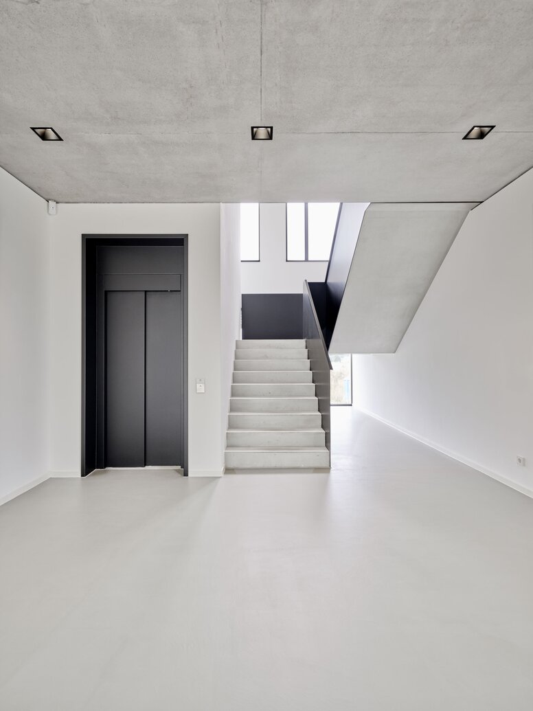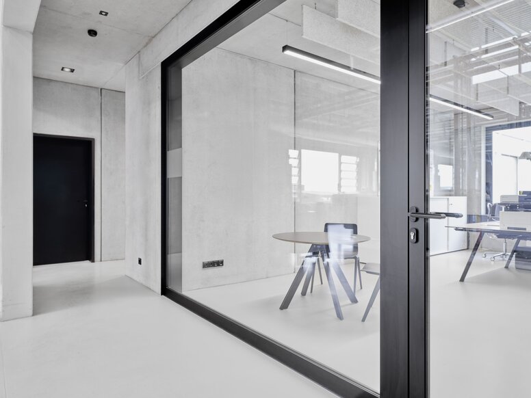No unrest at all: Exposed concrete and a design trowelled floor in a concrete look create a uniform, continuous look in the administration.