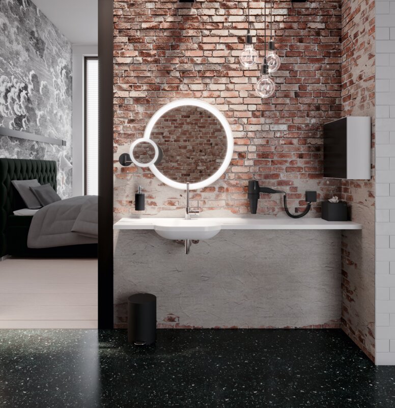• Intelligent colour design: In terms of colour, neutral tones should dominate, visually enlarging the room and providing brightness. Accessories in contrasting colours can add depth and sophistication. System 900 from HEWI, for example, is available in different colours – from lever handles to support rails, paper roll dispensers and brush sets through to the washbasin system.