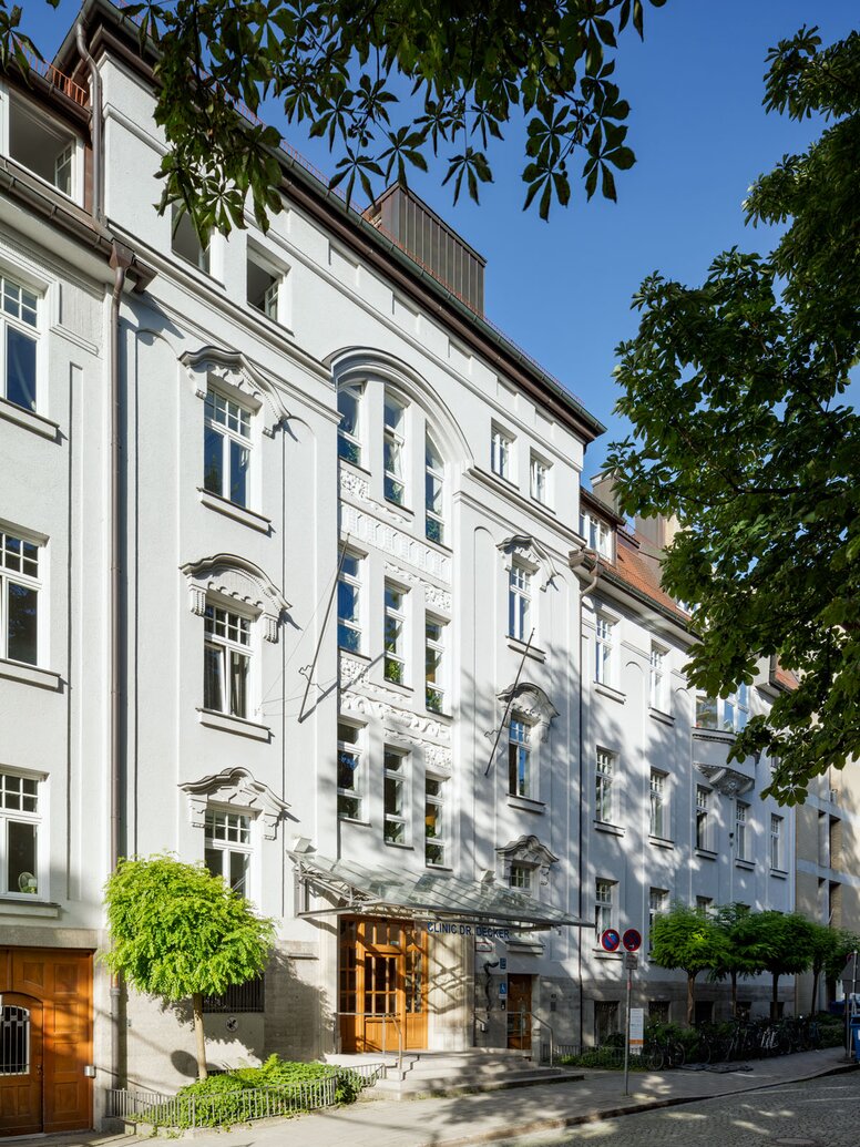 In the heart of the district, in the immediate vicinity of the English Garden, the Clinic Dr. Decker is located in a listed Art Nouveau villa. Founded in 1896, the clinic looks back on a history of over 120 years and is now run by the fourth generation in the family tradition.