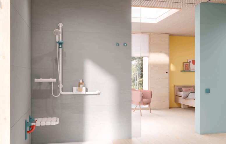 L’équipement des salles de bain des patient·es est un critère décisif de la Healing Architecture à l’hôpital. Celles-ci doivent non seulement être accessibles à tous et sûres, mais aussi créer une atmosphère apaisante et propice à la guérison. Les éléments ergonomiques jouent un rôle important pour améliorer le confort des patient·es. Les matériaux hygiéniques et faciles à entretenir contribuent au contrôle des infections et augmentent le bien-être. De plus, un éclairage bien pensé et des couleurs agréables favorisent la détente et soutiennent le processus de guérison. Une salle de bain bien conçue doit répondre aux besoins variés des patient·es. Les produits d’assistance tels que les barres de maintien, les barres d’appui relevables et les sièges offrent un confort et une sécurité supplémentaires pour tous. Ces éléments ne facilitent pas seulement le quotidien clinique des patient·es, mais favorisent également leur autonomie et peuvent soulager le personnel soignant.