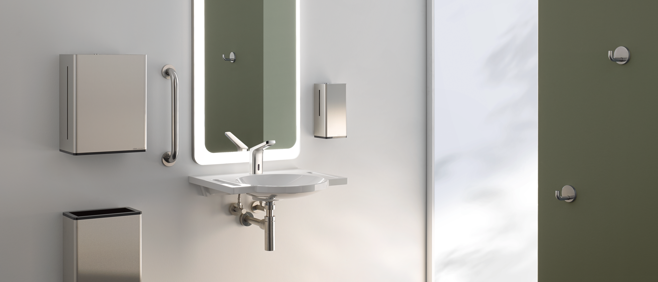 Des modèles avec des options de maintien intégrées, des versions hygiéniques avec un bord d'attaque et même des solutions à longueur variable vous offrent un large éventail de possibilités de conception des équipements. Grâce à leur profondeur, les lavabos sans barrière peuvent être utilisés de manière flexible. Ils peuvent être utilisés aussi bien en position debout - même avec des béquilles ou un déambulateur - qu'en position assise avec un fauteuil roulant.