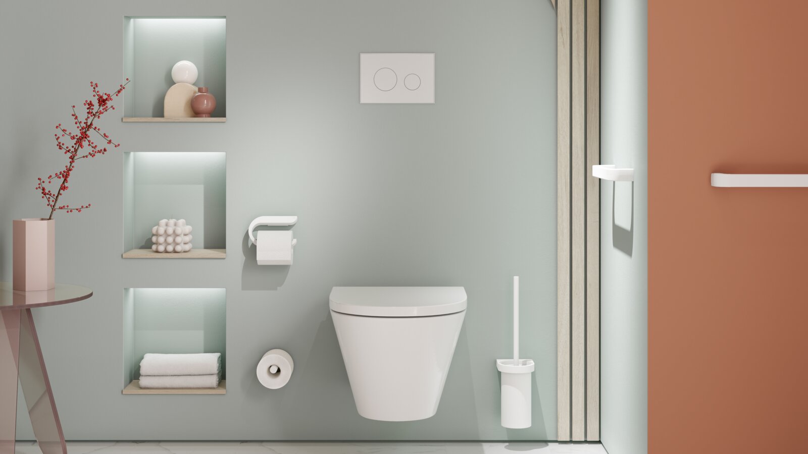 Een voorbeeld van een hoogwaardige ontwerpoplossing is het System 162 van HEWI. Deze maakt indruk met een ongecompliceerde designtaal en een duidelijk gedefinieerde materiaalkeuze. Bijzonder kenmerkend is de precieze versteksnede, die voor een elegante look zorgt. Het systeem is verkrijgbaar in een hoogwaardige verchroomde versie, in mat gepolijst roestvrij staal, met PVD-oppervlakken of met poedercoating. Inzetstukken van gesatineerd glas of hoogwaardige polyamide zijn ook verkrijgbaar om het ontwerp af te ronden.
